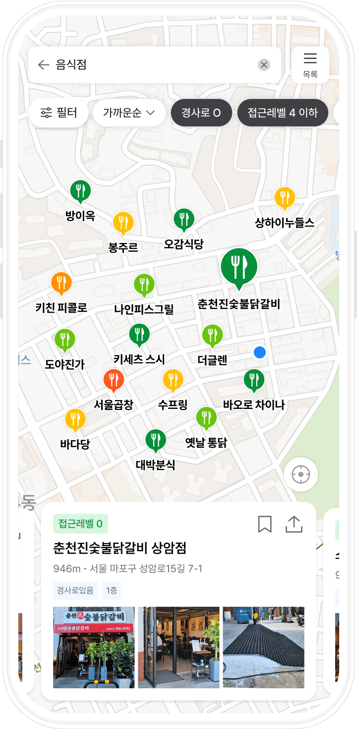 모르는 지역을 가도 접근 가능 장소를 쉽게 찾을수 있을것 같아요